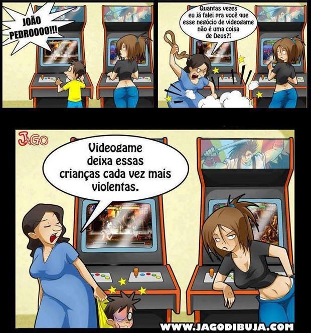 Ah, os clássicos argumentos de mãe raiz: “esse tal de videogame deixa as crianças violentas!” E enquanto grita isso, ela mesma arrebenta o filho com um cinto e ainda sobra pra quem tava só assistindo a partida. É praticamente um especial de artes marciais em tempo real, com lição de moral e hematomas inclusos.